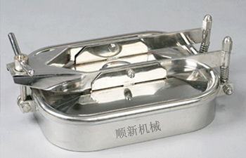 长方形常压人孔材质: SUS304 SUS316L常用规格:330×430 430×530 大小、高度、壁厚、压力均可根据客户要求定做。结构形式:外竖开式人孔盖子、扳手式手柄、外横开式人孔盖子、手轮式手柄(塑料或不锈钢)。产品应用: 啤酒、饮料、乳食品、制药、水处理、化工、化妆品、生物工程、流体设备制造等工业领域罐设备上。 卫生级长方形常压人孔YAZ型