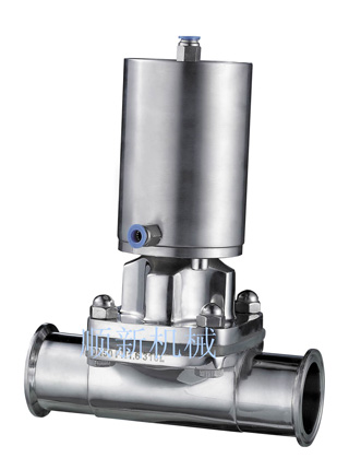 卫生级快装式气动隔膜阀 材质: SUS304 SUS316L 规格: 1/2"- 2" DN10-50 标准: DIN、ISO、IDF、3A 工作原理:可由驱动装置进行遥控手动操作。驱动装置有三种标准:常闭型、常开型、及气气型。产品应用: 啤酒、乳品、饮料、食品、制药、水处理、化工、化妆品、生物工程等工业领域。 气动快装隔膜阀(盖米型)