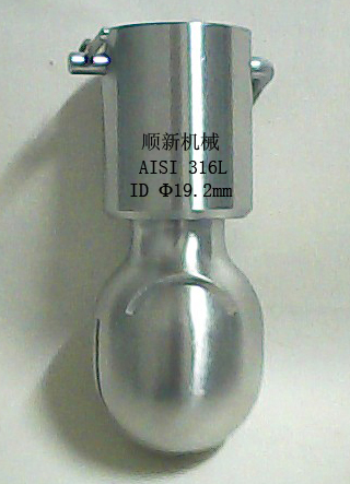 卫生级插销式自旋转360°清洗喷洒头25(旋转洁净清洗球) 材质:AISI 316L 规格:ID19.2mm 球Φ25mm 连接:插销 螺纹 焊接 根据客户要求提供接口 标准:ISO DIN BPE US 压力:1 - 3 bar 推荐 2 bar 温度:140 ℃ 应用:制药、食品、乳品、酿酒、饮料、水处理、化工、化妆品、生物工程、流体设备制造等工业清洗领域容器、储罐设备上。